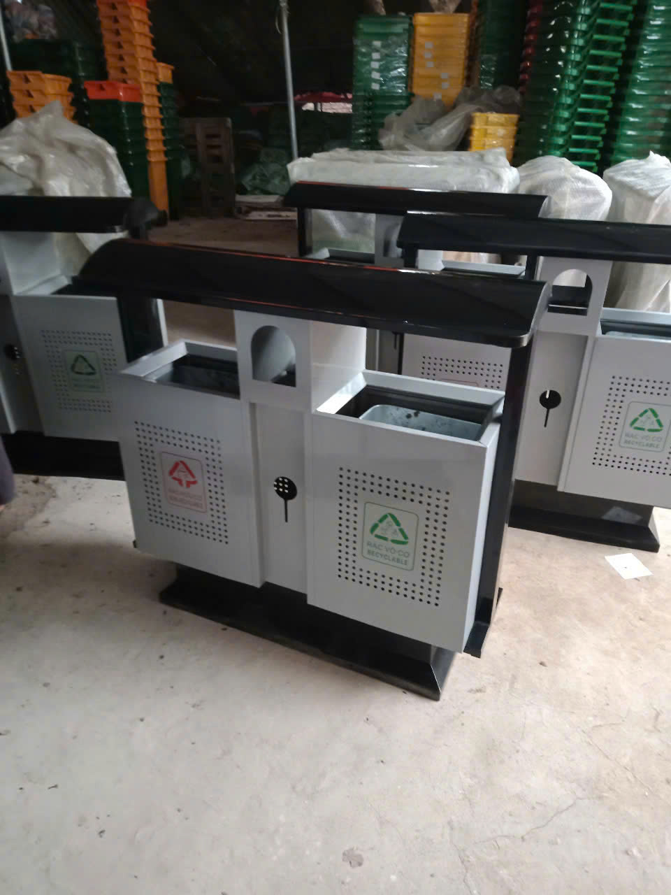 Thùng rác 2 ngăn bằng sắt mái vòm H02