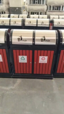 – Thùng rác gỗ 2 ngăn nắp lật sở hữu khung thép chắc chắn, bề mặt bọc gỗ. Lớp gỗ công nghiệp đã được tẩm hóa chất chống mối mọt. Lớp phun sơn bên ngoài bóng bẩy không những có tác dụng tạo màu đẹp mà còn có khả năng chống thấm nước, chịu được nắng gió và nước mưa.