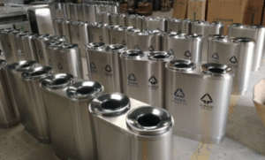 Hình ảnh thùng rác inox 2 ngăn tròn DA88