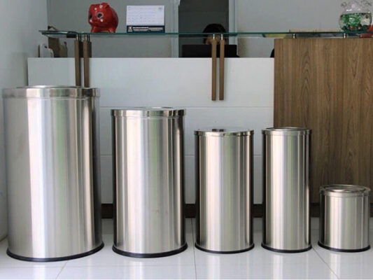Chất liệu: Vỏ thùng rác bằng inox 201, thùng lót rác bằng tôn hoa, chân đế bọc cao su