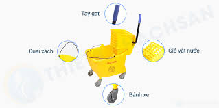 -Ngoài ra, xe vắt nước lau nhà còn thiết kế thêm quai xách giúp bạn có thể xách qua bậc thềm, hay cầu thang.